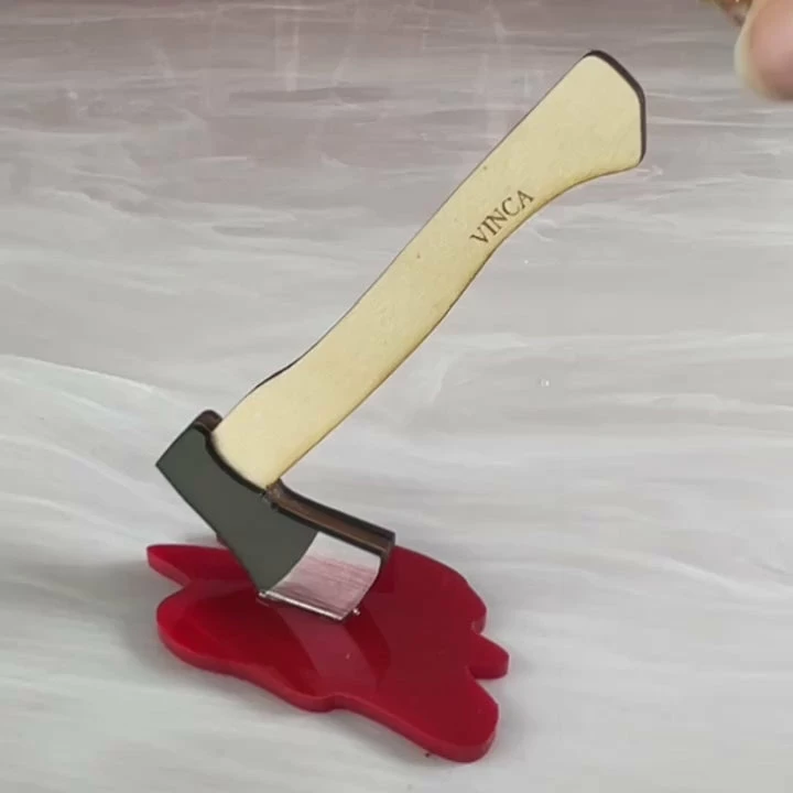 Keep your rings in one place with this handy-dandy Axe-idental Ring Holder! Lizzie Borden approved, this ring holder is a wooden long handled axe standing in a pile of redness made of sturdy acrylic. It’s also tiny so it’s cuuuute!