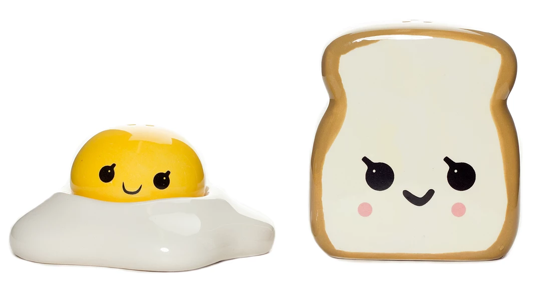 These salt & pepper shakers would look EGG-cellent in your kitchen! Shake it up with these adorable over easy egg and toast shakers!