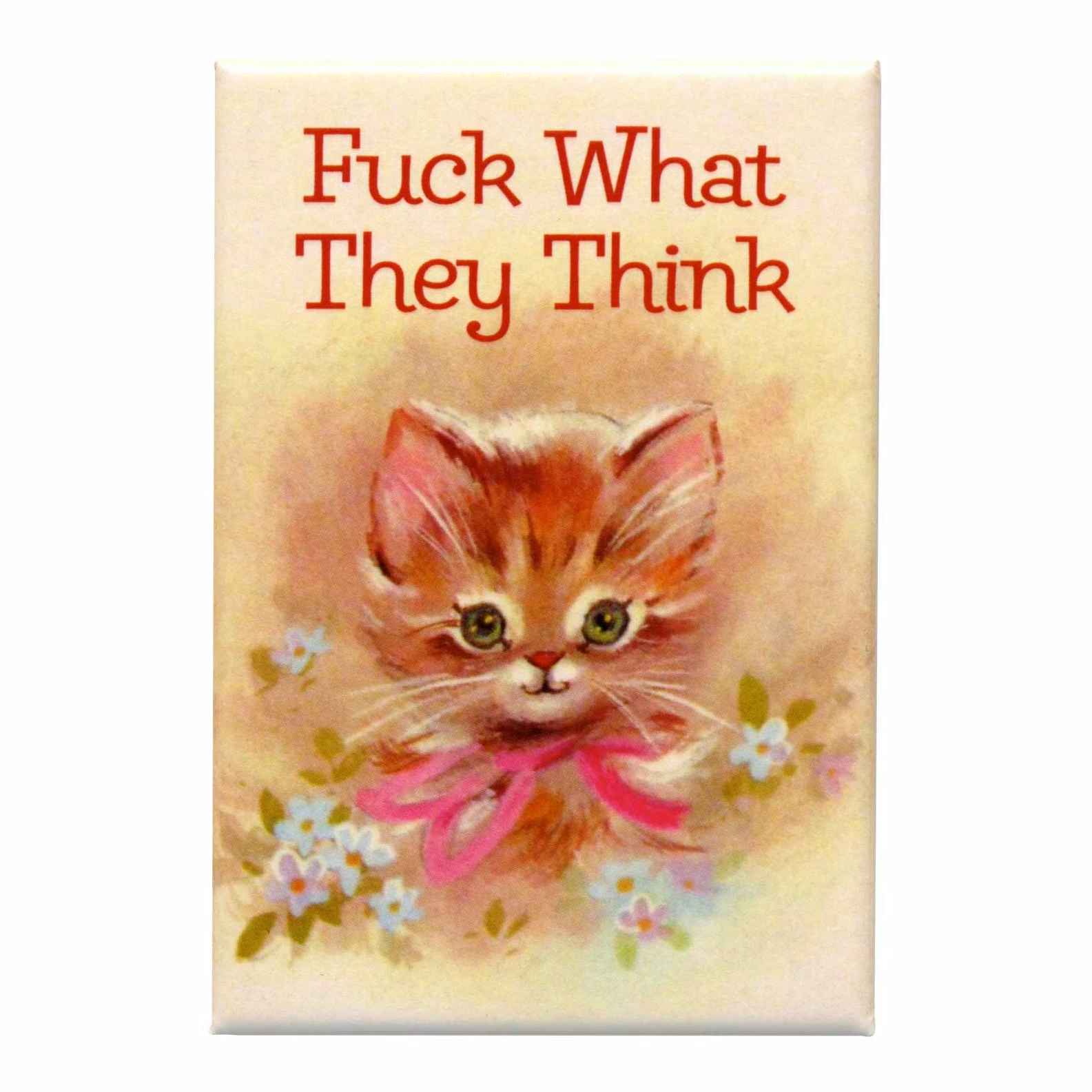 Psst. Hey. Fuck what they think. This sweet magnet has the perfect little motivational quote to get you through your day plus a cute vintage kitty image as an added bonus!