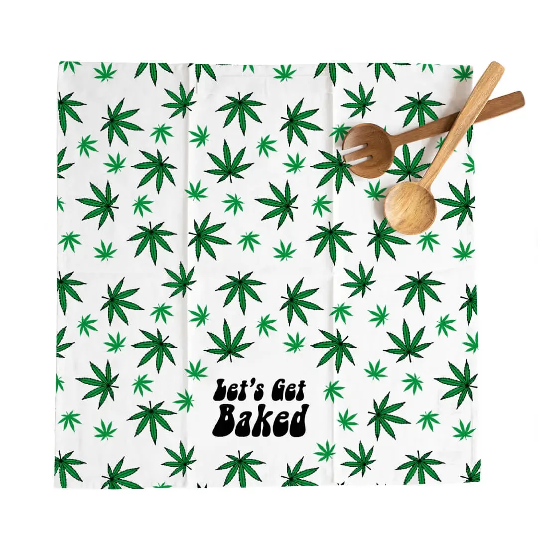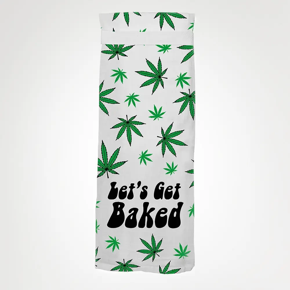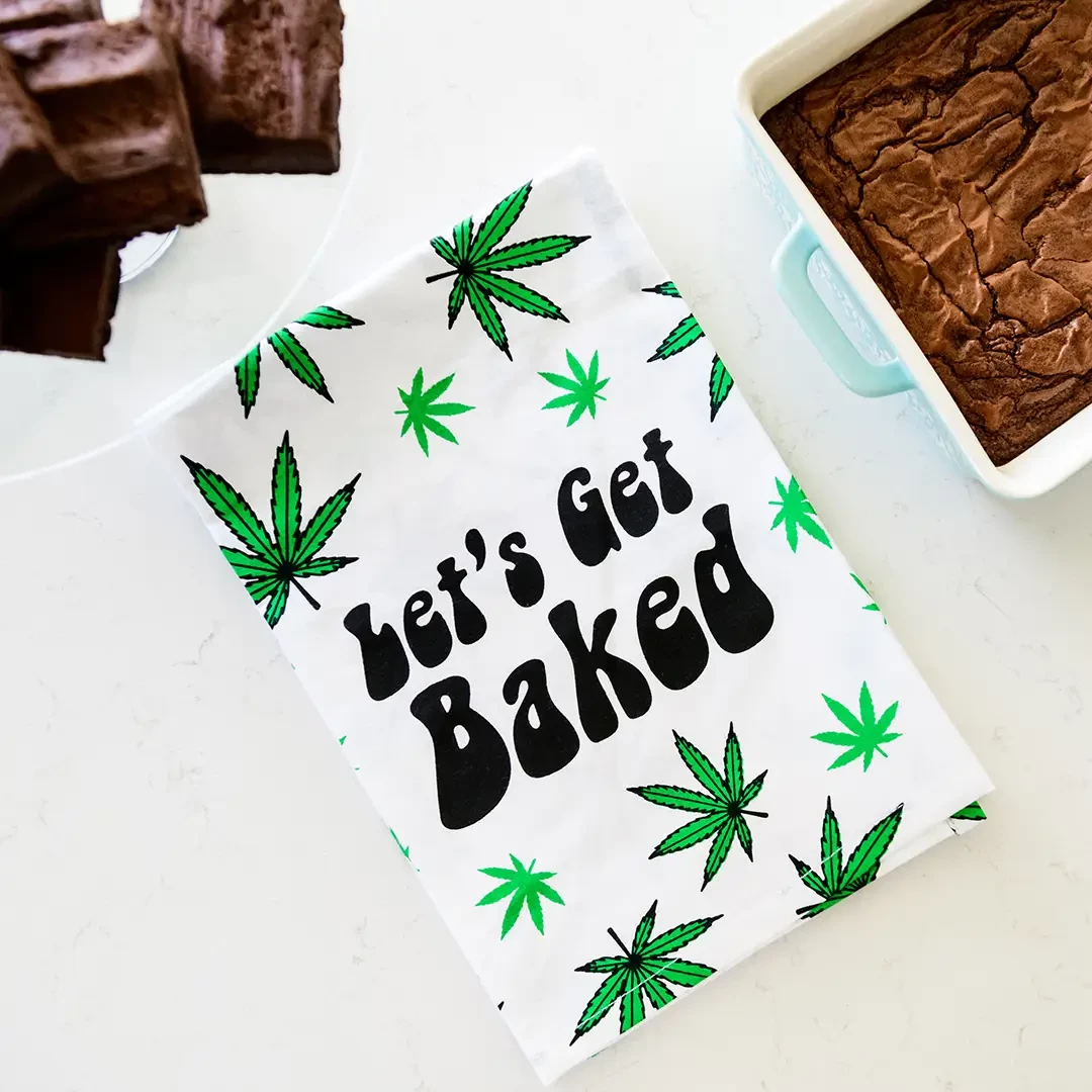 Clean up after your magic brownie endeavors with this fun Let’s Get Baked dish towel!