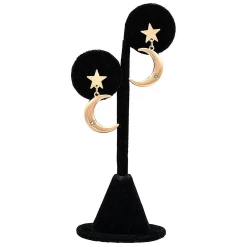 Like the heavens circling the earth, these silver celestial earrings will be the center of your accessory collection! They feature simple crescent moon and star shapes in a hoop shape. Suitable for traditional pierced ears.