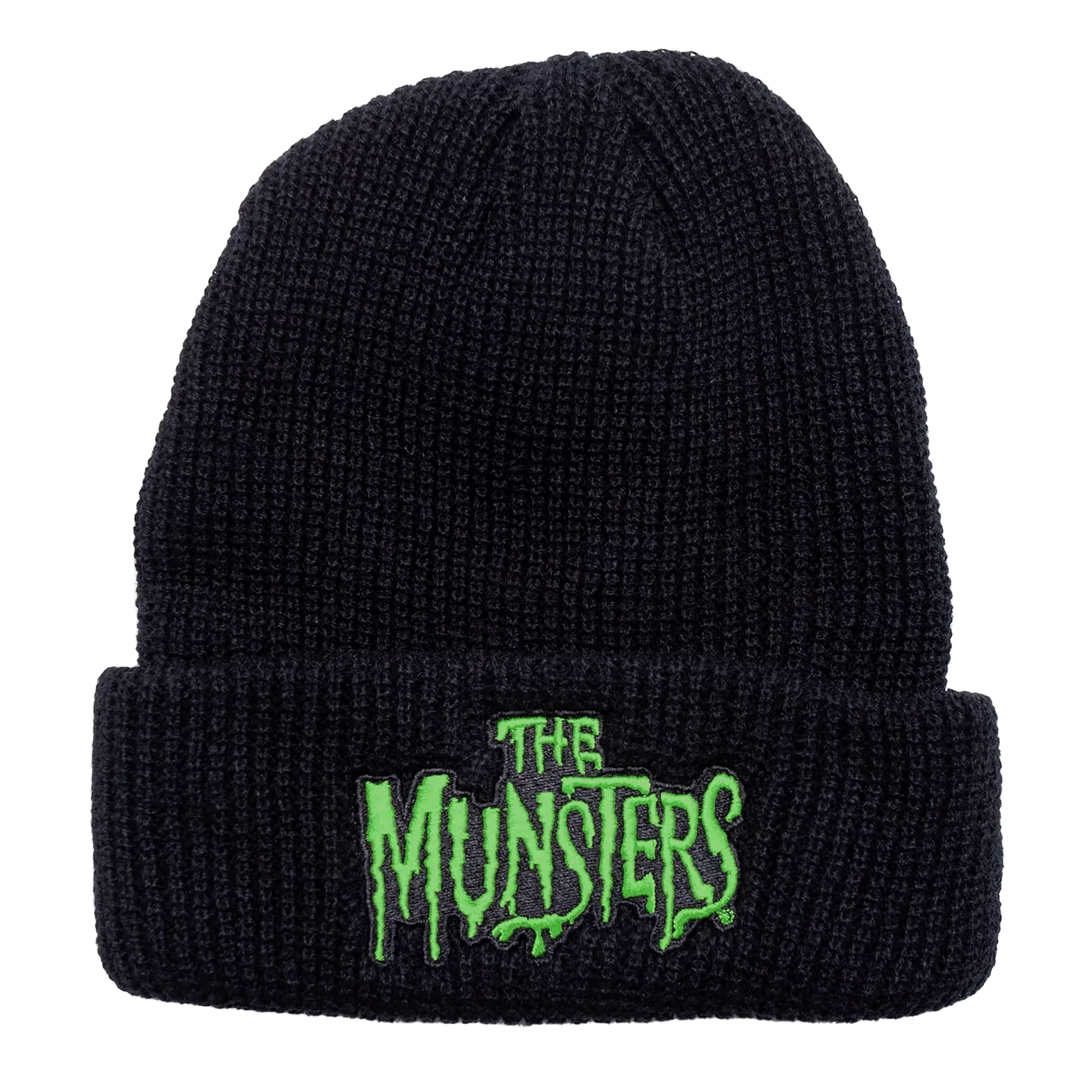 Stay creepy and keep warm with The Munsters Logo Beanie from Rock Rebel. This black knit beanie has an embroidered The Munsters classic logo on the front roll in green.