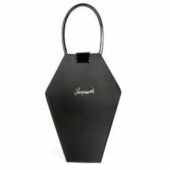 Meeee-OW! This Cat Lady is clearly kicking ass and taking names. Do. Not. Fuck. With. Her. (or her cats!) This unique coffin shaped purse features a Sol Rac original illustration on the front, while the sides are a shiny black vinyl that matches the handle. Large enough to carry all your essentials, the lined interior has one big zipper pocket and one open pocket to help keep ya organized and all of your most important items within easy reach.