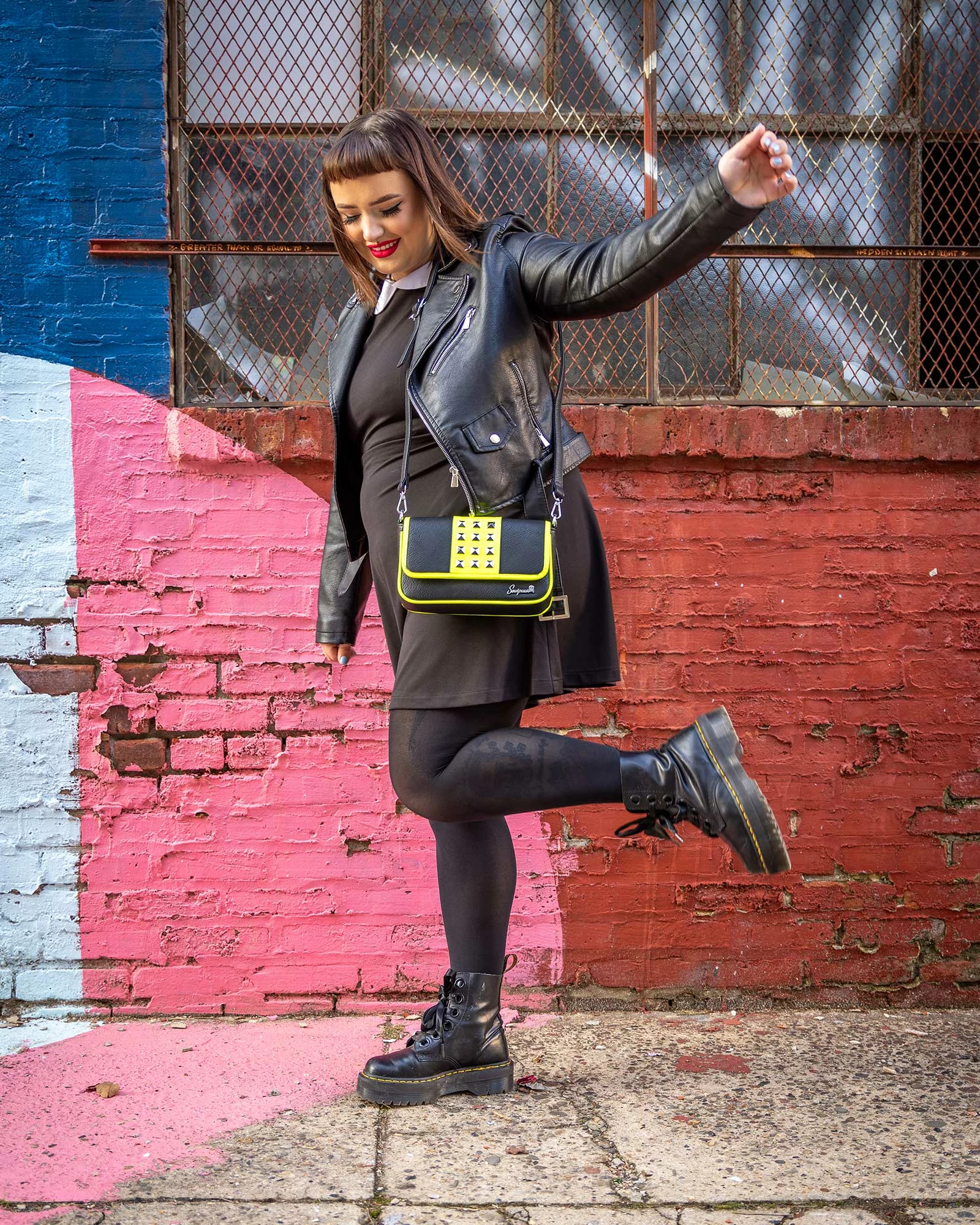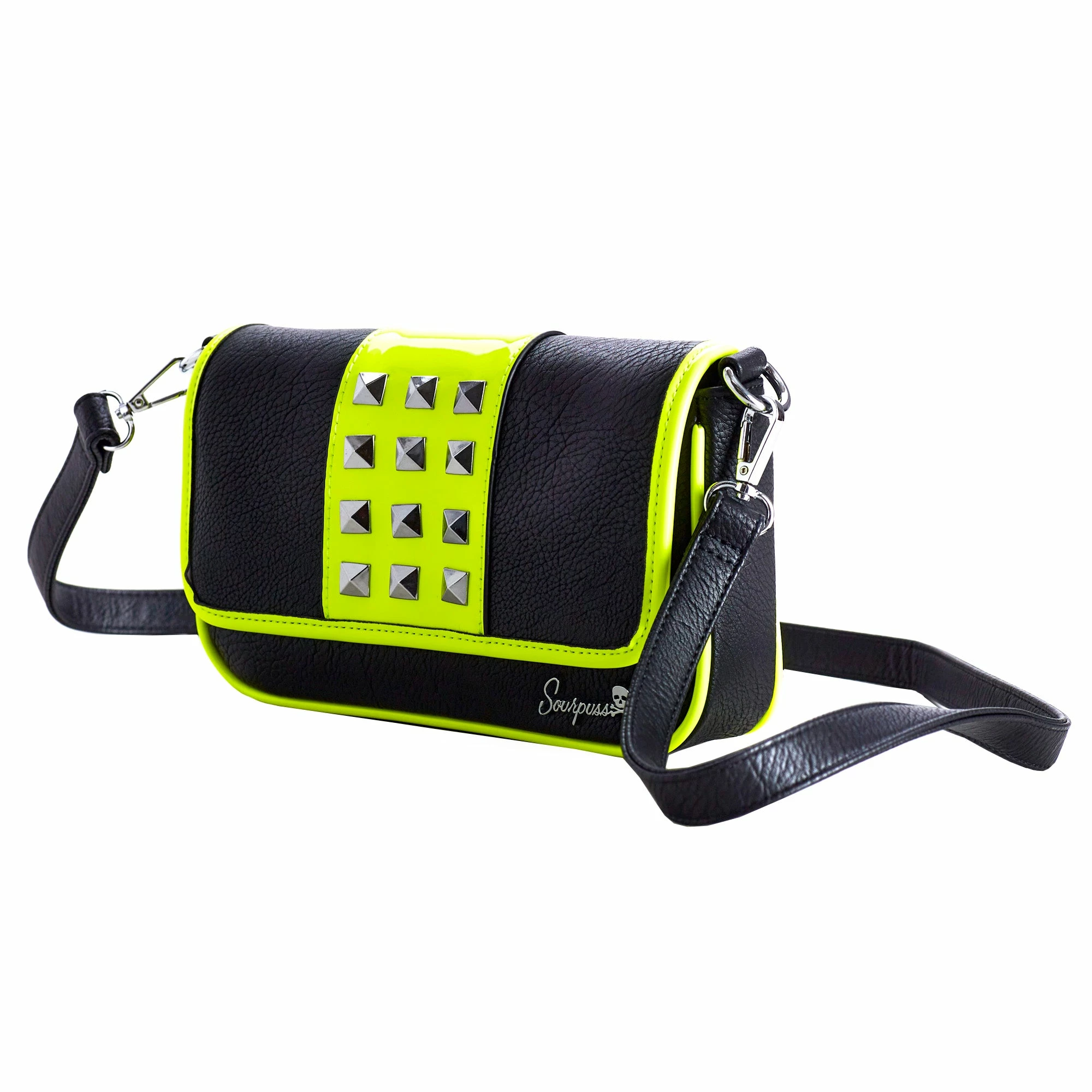 Our Aimee Purse in Citron is as versatile as it is badass! The long, cross-body strap is removable, turning it into a clutch instantly. Made of a high quality faux leather with eye popping neon citron accents, the pyramid studs give it an edge that looks great with pretty much everything. There is an exterior zippered pocket on back, along with additional interior pockets to keep you organized!