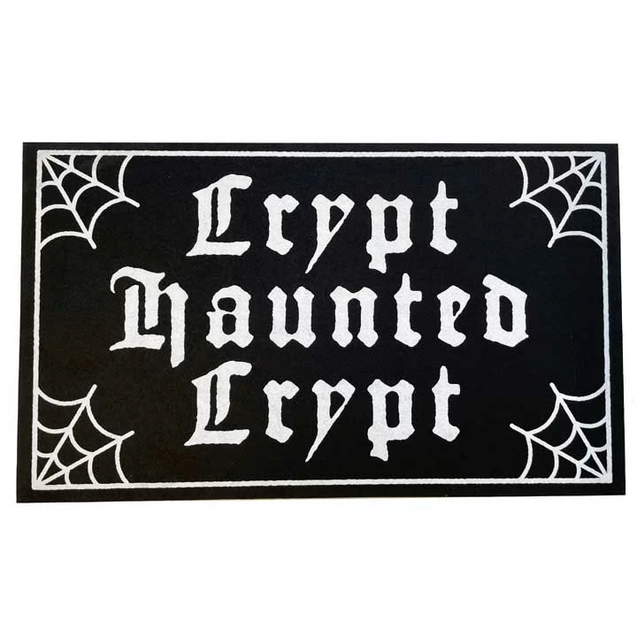 The Crypt Haunted Crypt doormat is the perfect something extra for your spooky abode! This screen printed, heavy duty rubber mat is just what you need to welcome your favorite boils and ghouls. We recommend only spot cleaning for this, do not put it in the washing machine!