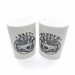 If you’re looking for the perfect thing for your witchy kitchen, look no further! The new Floral Skull salt and pepper shakers are just what you need. This beautiful artwork was created exclusively for Sourpuss by artist Villy Villain, and depicts a skull planter with flowers and foliage.