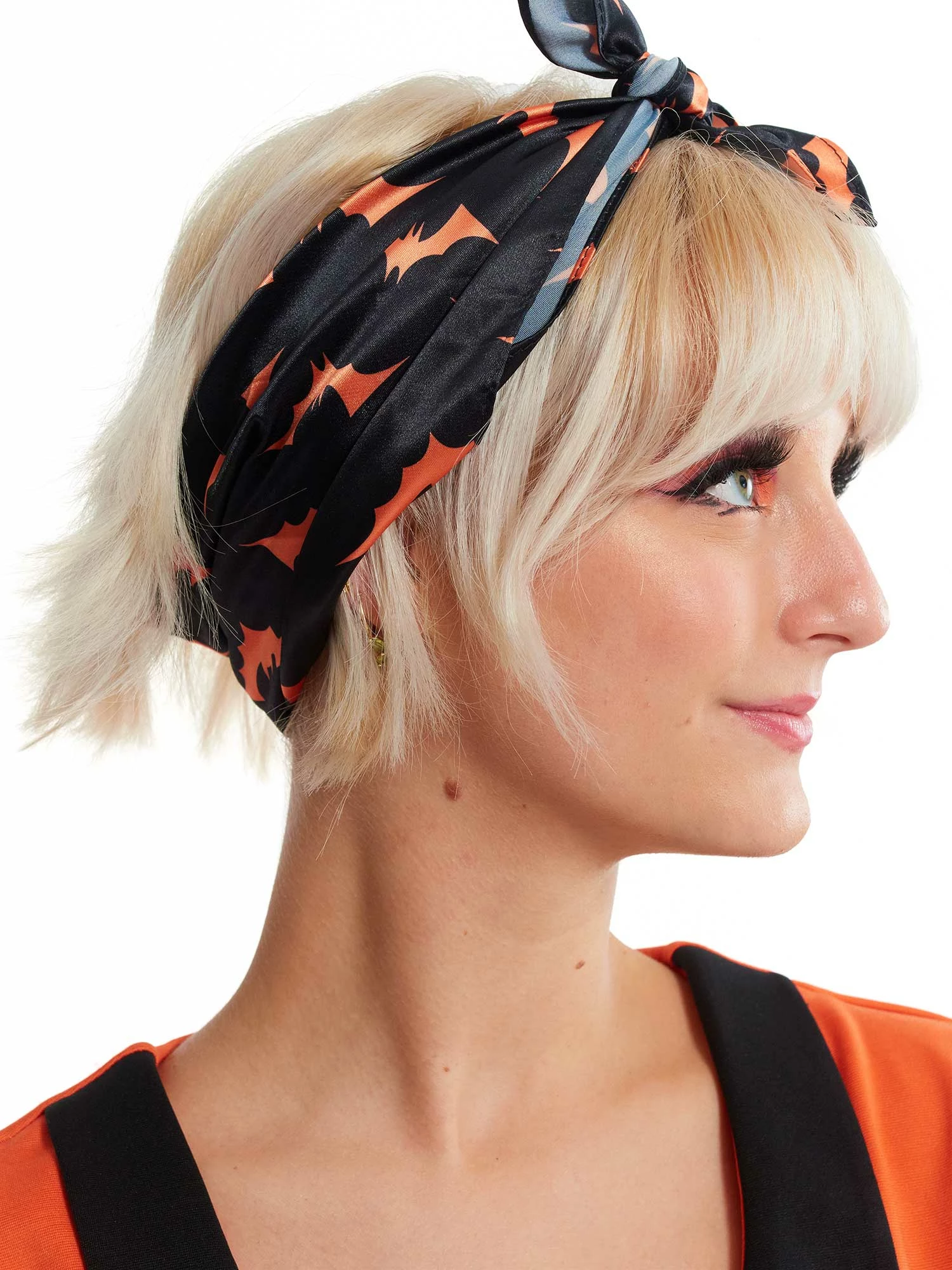 Celebrate Halloween every day with the new Rosie Hair scarf in orange and black Luna bats print! This silky, soft scarf features our signature luna bats artwork, now in the perfect shade of orange. Pair it with one of our other orange and black Luna Bats styles for a perfect combo!