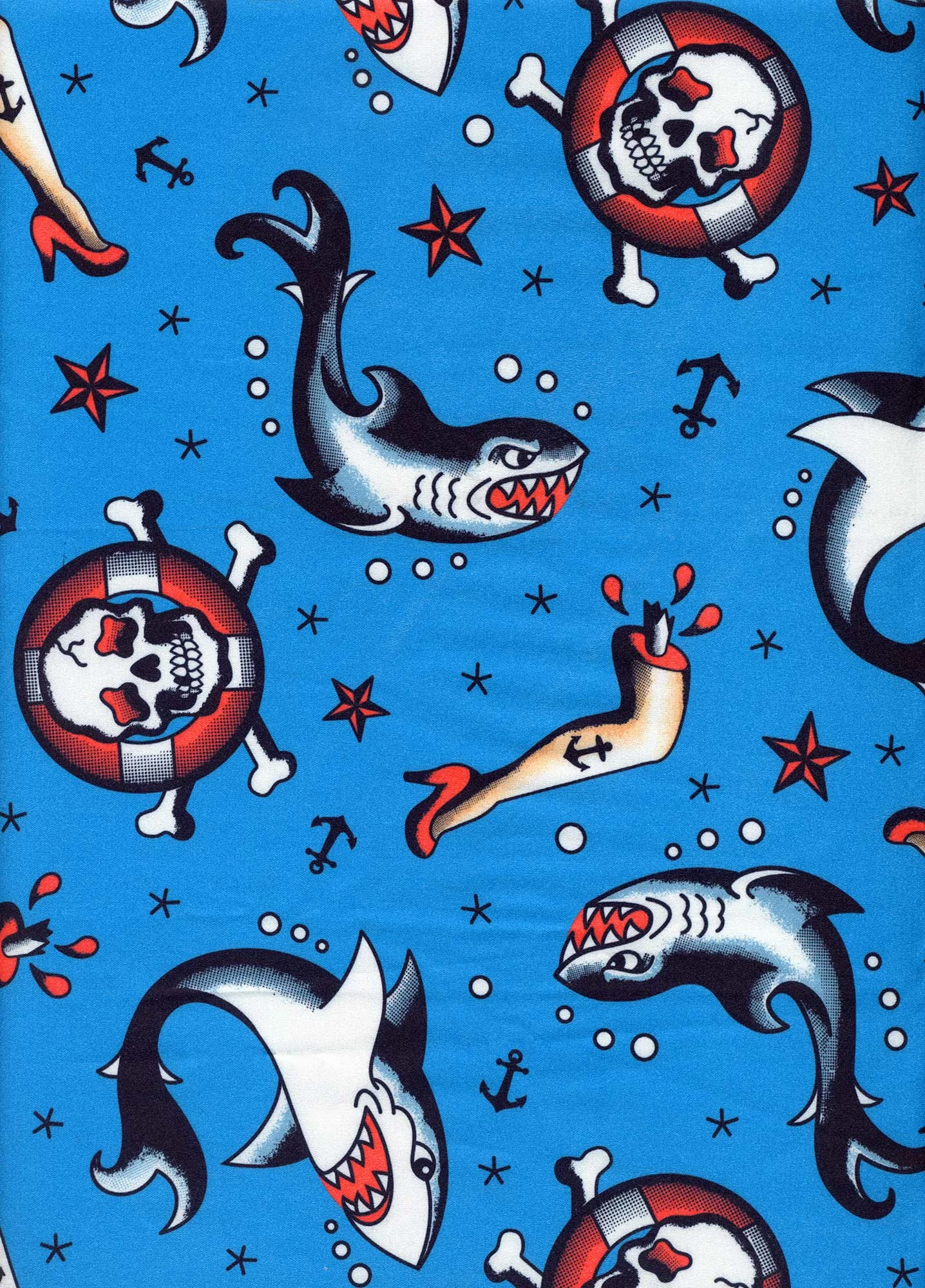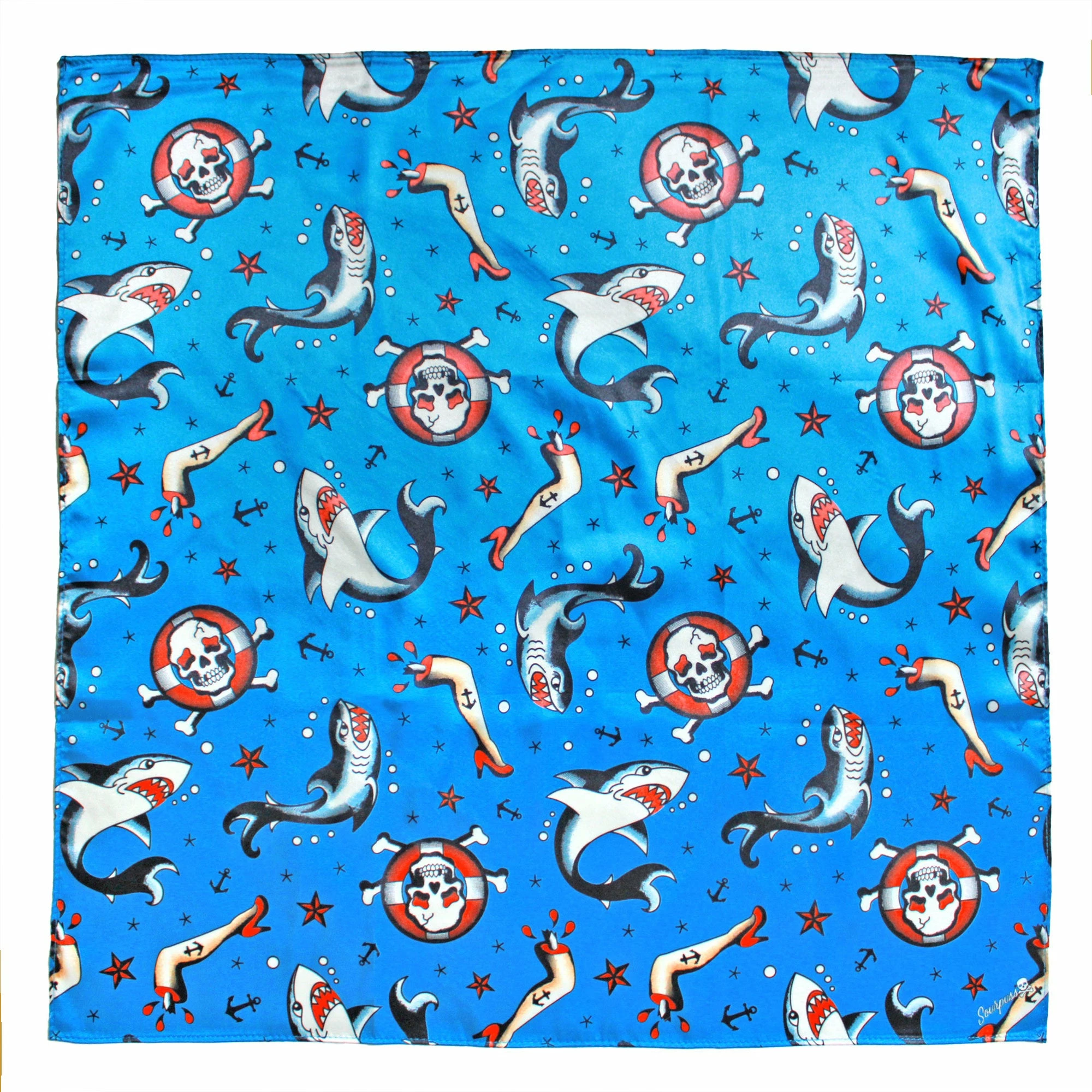 Celebrate shark week all year long with the new Shark Bite Rosie Hair Scarf! This buttery soft and silky hair scarf features the art of Jared Gaines, created exclusively for Sourpuss. We also love the little Sourpuss logo printed in the bottom corner!