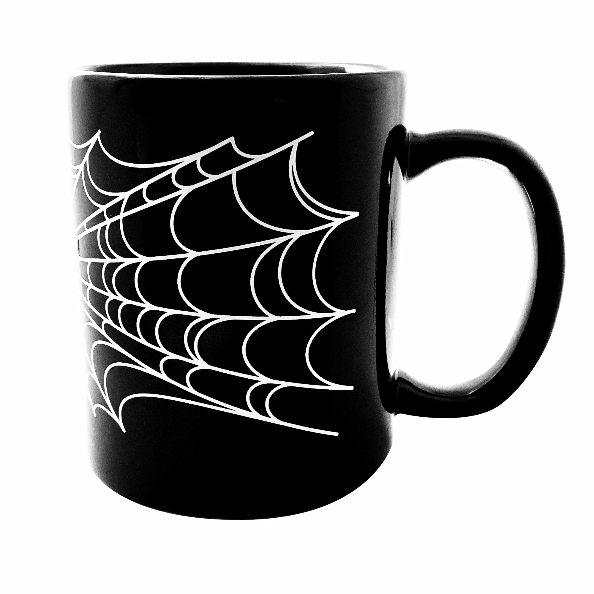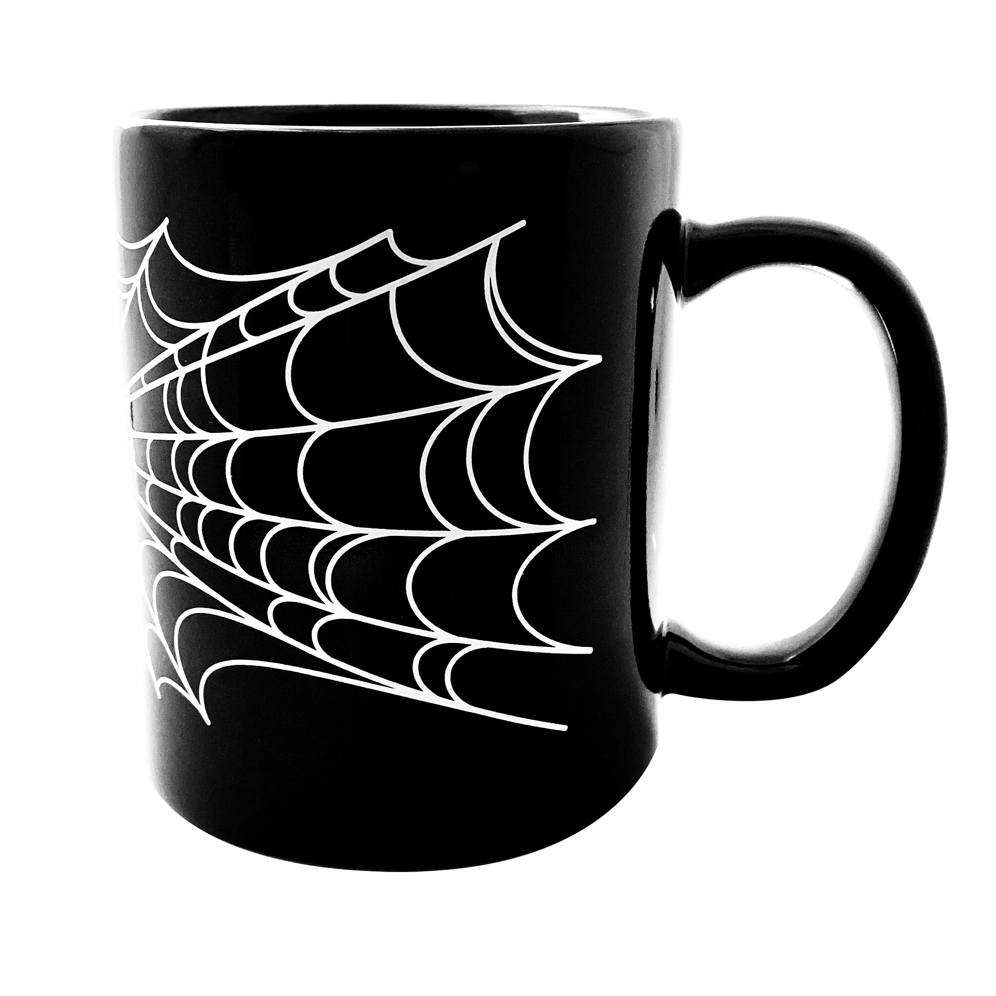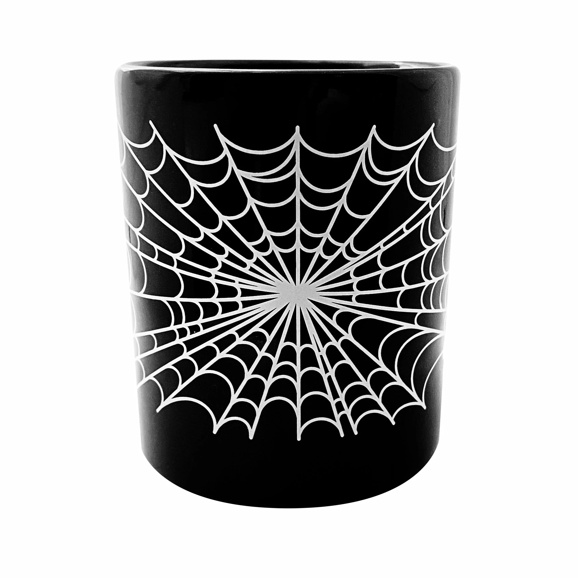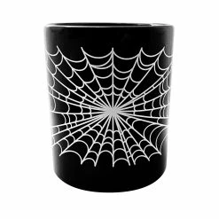 Our new Spiderweb Mug is perfect for all you early morning ghouls! This black ceramic mug is printed with a eye-popping white spiderweb, just what you need for your black coffee!