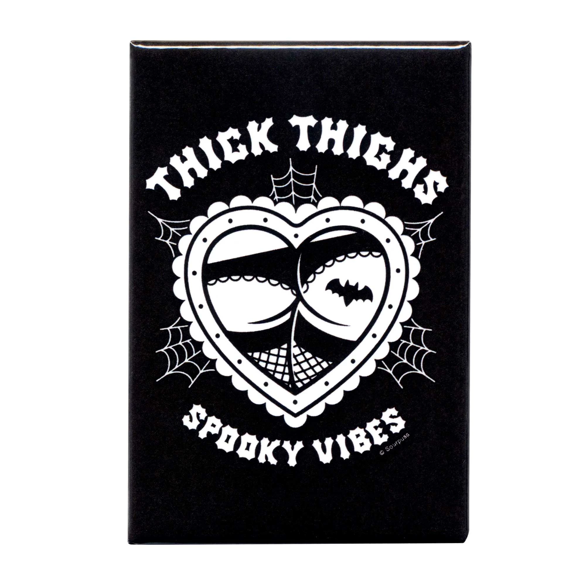 We couldn’t think of a more perfect personal mantra. Add a little cheekiness to your fridge, file cabinet, or locker with our Thick Thighs, Spooky Vibes magnet!