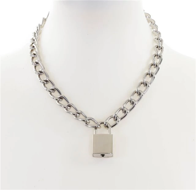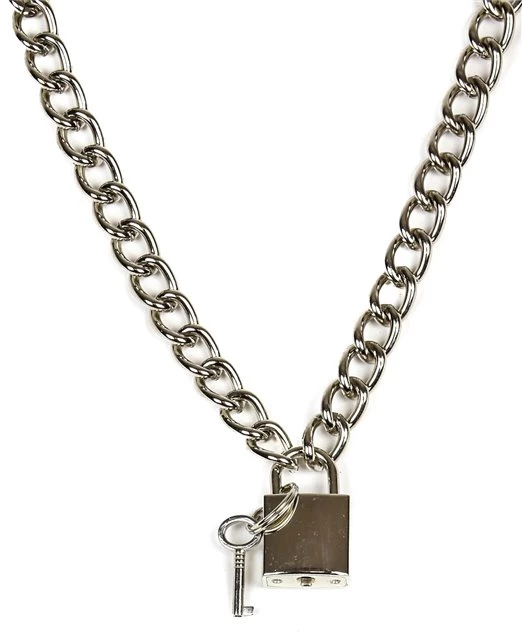 Lock ’em up with this classic lock and key chain necklace in silver. It features a real, working, silver lock pendant with key on a matching silver chain.
