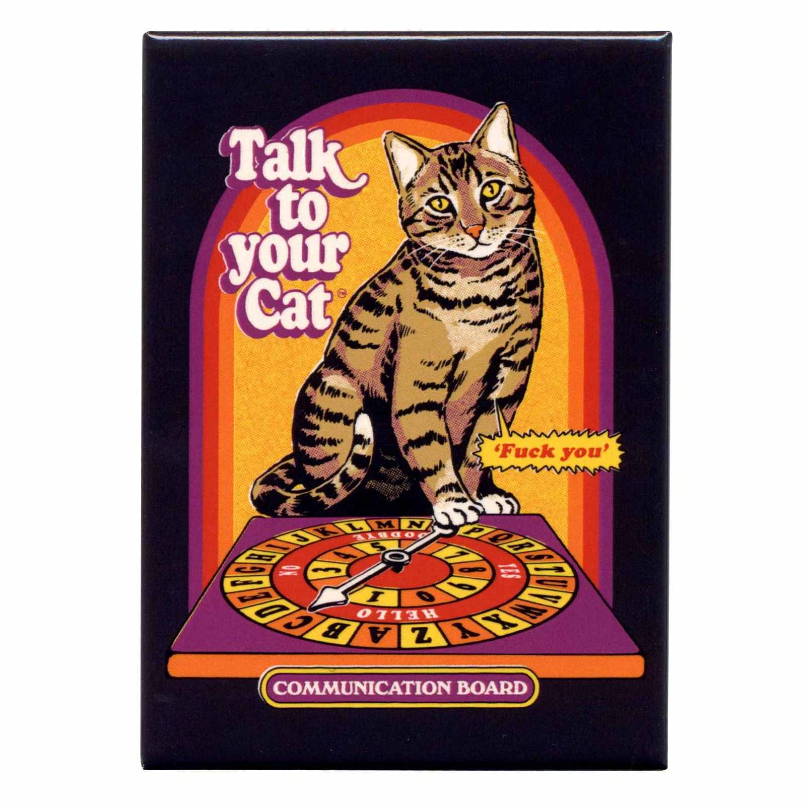 Sure, you can talk to you cat, but that doesn’t mean they’ll say what you want to hear. This fun magnet features the art of Steven Rhodes and is perfect for your fridge, file cabinet, or anywhere magnetic you wanna stick it!