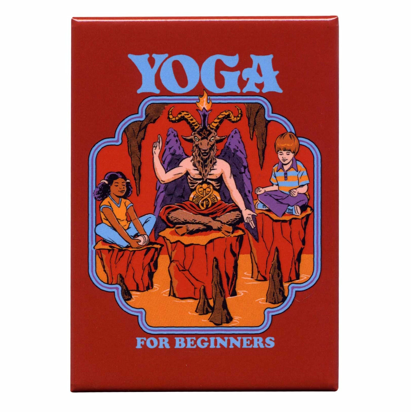 Hot yoga takes on a whole new meaning with this Yoga For Beginners magnet featuring the art of Steven Rhodes. Find your center with help from Baphomet, and you’ll be doing down demon in no time!